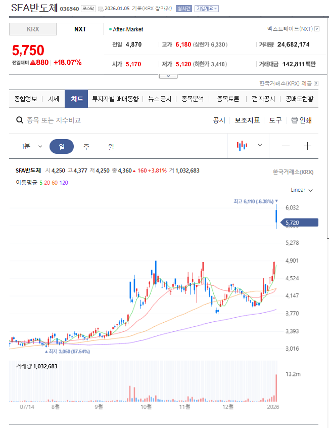 최근 코스닥 시장에서 SFA반도체가 눈에 띄는 상승 흐름을 보이며 투자자들의 관심을 집중시키고 있다.