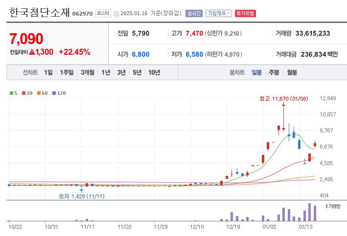 이 중 하나인 한국첨단소재에도 영향을 미쳐 주가가 오르고 있는 상황인데요