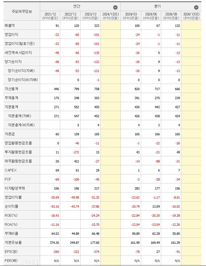 2024년 9월 전년동기 대비 연결기준 매출액은 30.7% 증가했으며 영업손실은 49.5% 감소, 당기순손실액은 50.8%가 감소했다는 점이 눈에 띕니다.