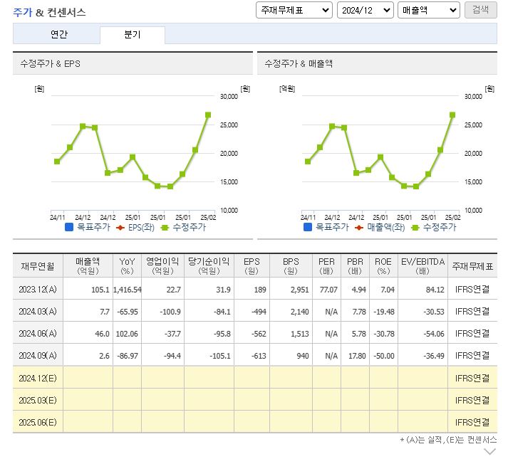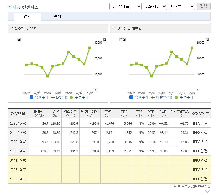 매출액은 꾸준히 나오는 실적이나 그렇게 크지 않고 매년 영업이익과 당기순이익은 적자 상태로 나와있습니다.