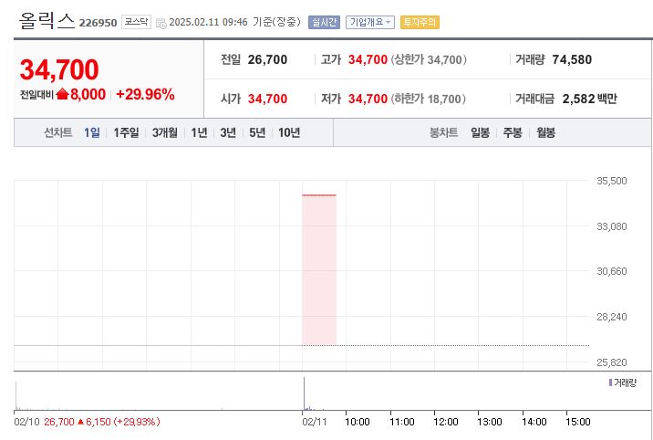 2024년 7월 경 8,280원까지 내려갔다가 이후 반등세를 보이며 오르락내리락하다가 현재 이틀째 상한가를 기록중입니다. 현재로도 주가가 29.96% 상승중입니다.